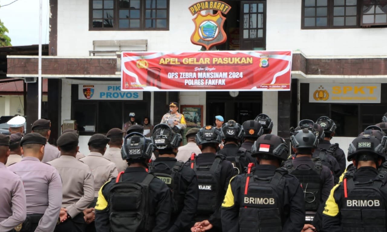 MATTANEWS.CO, FAKFAK – Kepolisian Resor Fakfak laksanakan apel gelar pasukan Operasi Zebra Mansinam 2024, digelar serentak di seluruh jajaran Polda Papua Barat pada Senin (14/10/2025).