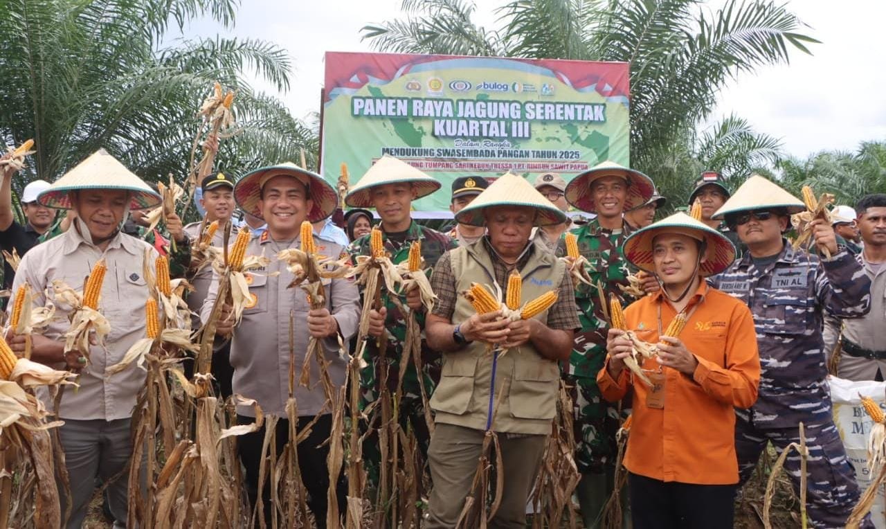 MATTANEWS.CO, FAKFAK – Kapolres Fakfak AKBP Dr. Hendriyana SE.MH memimpin pelaksanaan panen raya jagung serentak kuartal III di lahan tumpang sari Kebun Thessa I PT Rimbun Sawit Papua. Distrik Tomage, Kabupaten Fakfak, Papua Barat, Sabtu (27/9/2025).