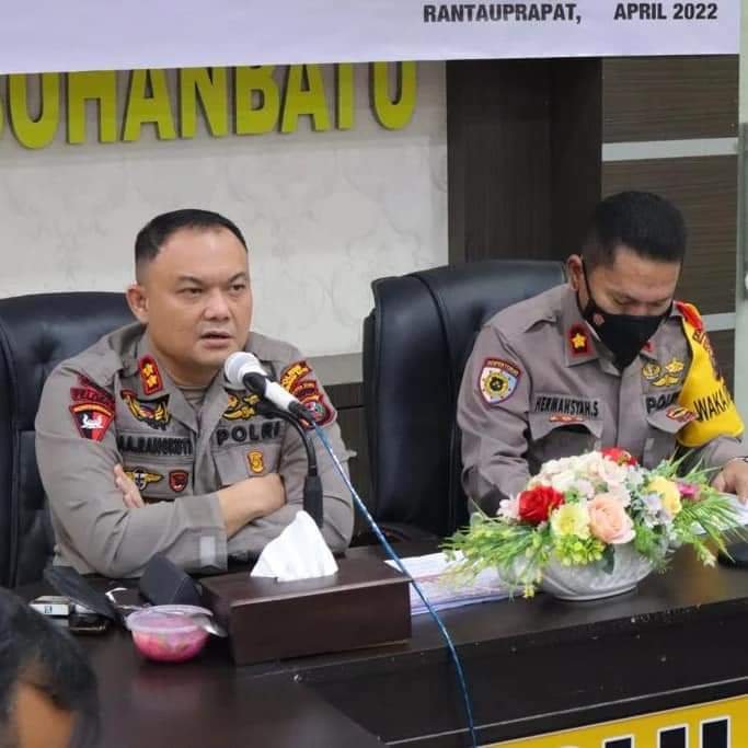 MATTANEWS.CO, LABUHANBATU – Kapolres Labuhanbatu, AKBP Antar Arlia Rangkuti SIK, didampingi Wakapolres Kompol Drs Hermansyah memimpin rapat kesiapan pengamanan jalur arus balik Idul Fitri 1443 H di Ruang Aula Tunggal Panaluan, Rabu (04/05/2022).