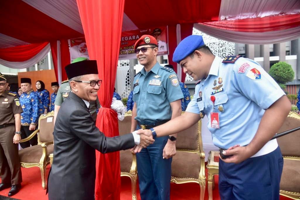 MATTANEWS.CO, PALEMBANG – Hari Bela Negara ke-75 Tahun 2023 di Provinsi Sumatera Selatan (Sumsel) diperingati dalam bentuk upacara dengan inspektur upacara (Irup) Sekretaris Daerah (Sekda) Sumsel Ir SA Supriono yang dipusatkan di Halaman Kantor Gubernur, Selasa (19/12/2023).
