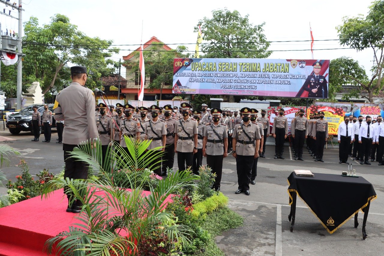 Adapun pejabat yang melaksanakan sertijab yakni Kasatlantas, Kapolsek Gondang, Kapolsek Bandung, Kapolsek Pakel, Kapolsek Besuki, Kapolsek Sumbergempol dan Kapolsek Ngantru.