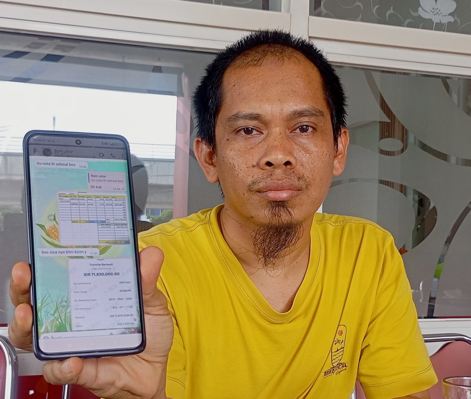 “Memang sebelumnya saya dan Roni, sepakat jual beli jagung sebanyak 20 ton seharga Rp 121 juta, di CV Pulau Mandiri Jaya Farm, Jalan Palembang – Betung KM 13, Kelurahan Tanah Mas, Kecamatan Talang Kelapa Kabupaten Banyuasin, Banyuasin, Sabtu (1/11/2025) pukul 10.40 WIB. Setelah dilakukan pembongkaran, saya pun langsung lakukan pembayaran dengan transfer ke rekening Roni, sama seperti jual beli pedagang lainnya,” paparnya.