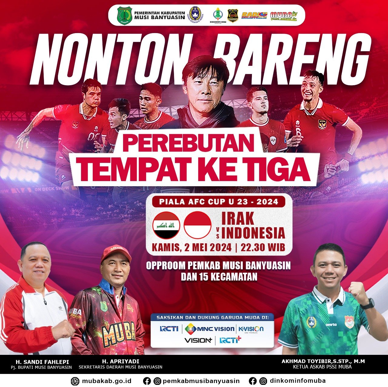 MATTANEWS.CO, MUBA – Timnas Indonesia bakal memperebutkan Tempat Ketiga Piala AFC CUP U-23. Diketahui Indonesia akan berlaga bersama dengan Irak pada, Kamis malam (2/5/2025). Performa luar biasa yang ditunjukkan timnas Indonesia, baik di level senior maupun U-23, membuat masyarakat Indonesia dari segala lapisan antusias menyambut laga Timnas Indonesia di ajang Piala Asia U-23 AFC tahun 2024.