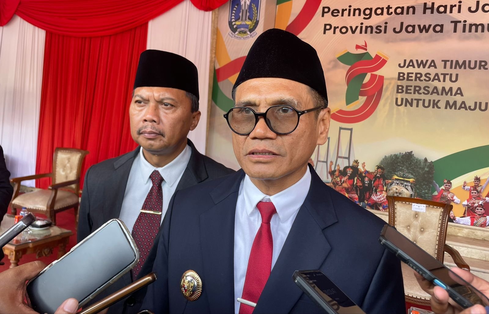 Heru menambahkan Peringatan Hari Jadi ke-79 Provinsi Jawa Timur dengan mengusung tema Jawa Timur Bersatu Bersama Untuk Maju.