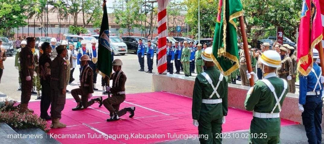 MATTANEWS.CO,TULUNGAGUNG – Penjabat (Pj) Bupati Tulungagung Dr. Ir. Heru Suseno, MT., menerima Kirab Pataka Jer Basuki Mawa Beya di Pendapa Kongas Arum Kusumaning Bongso, Senin (2/10/2023).