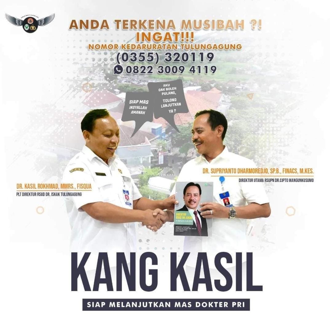 Menurut dr. Kasil, yang saat ini masih menjabat Kepala Dinas Kesehatan Kabupaten Tulungagung, dalam poster tersebut tertulis “Kang Kasil Siap Melanjutkan Mas Dokter Pri.”