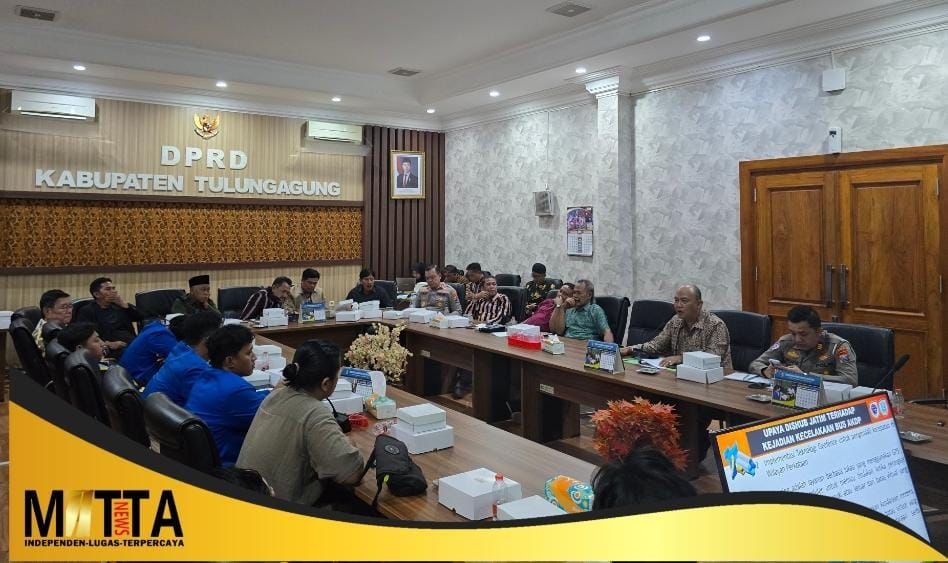 MATTANEWS.CO,TULUNGAGUNG – Kecelakaan maut Bus Harapan Jaya yang merenggut dua nyawa mahasiswa UIN Satu Tulungagung asal Jombang terus berbuntut panjang. Pergerakan Mahasiswa Islam Indonesia (PMII) Kabupaten Tulungagung turun tangan, menggelar audiensi lintas sektoral di ruang Aspirasi DPRD Tulungagung, Selasa (11/11/2025) siang.