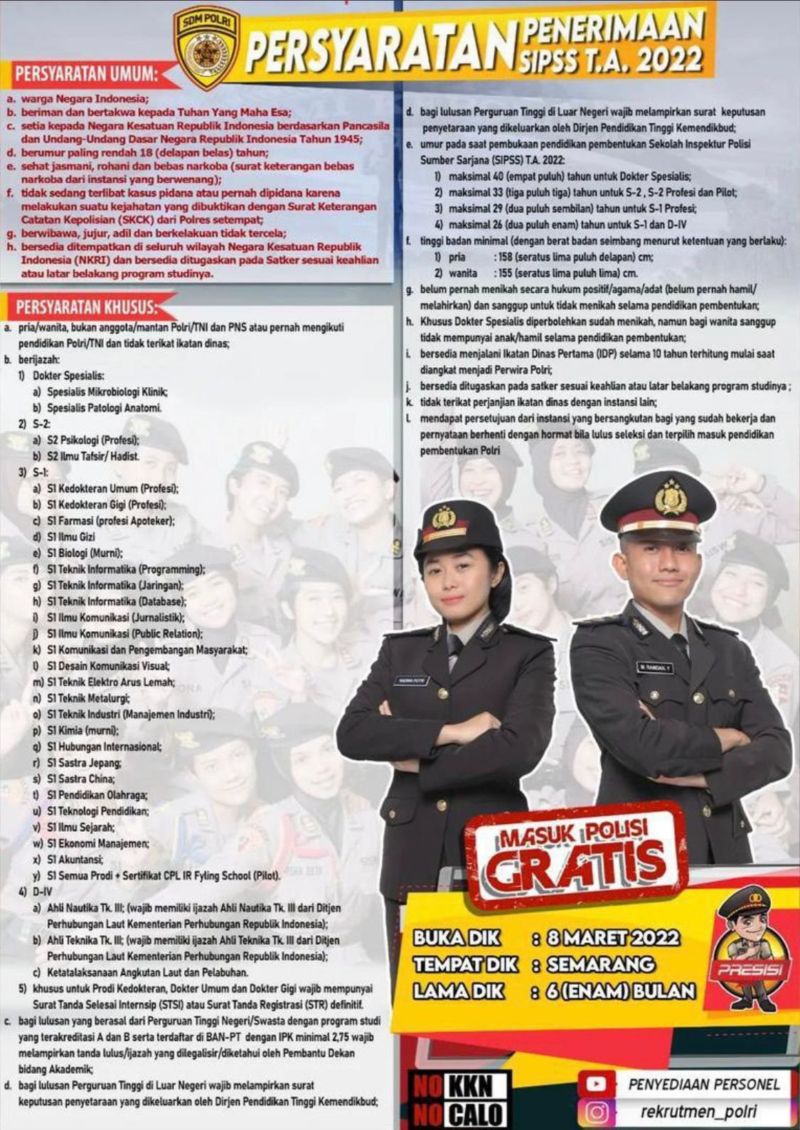 Juru bicara Polda Sulbar itu menjelaskan pendaftaran Sekolah Inspektur Polri Sumber Sarjana (SIPSS) dibuka secara online mulai 26 Januari hingga 30 Januari 2022 melalui website www.penerimaan.polri.go.id.