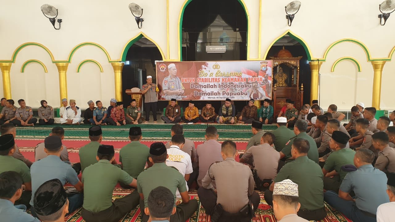 SULAWESI BARAT, Mattanews.co – Mendukung stabilitas keamanan Papua untuk Indonesia yang lebih damai, Kepolisian Daerah Sulawesi Barat bersama TNI dan Kementrian Agama Sulawesi Barat menggelar Doa bersama, Kamis (05/09/2019).