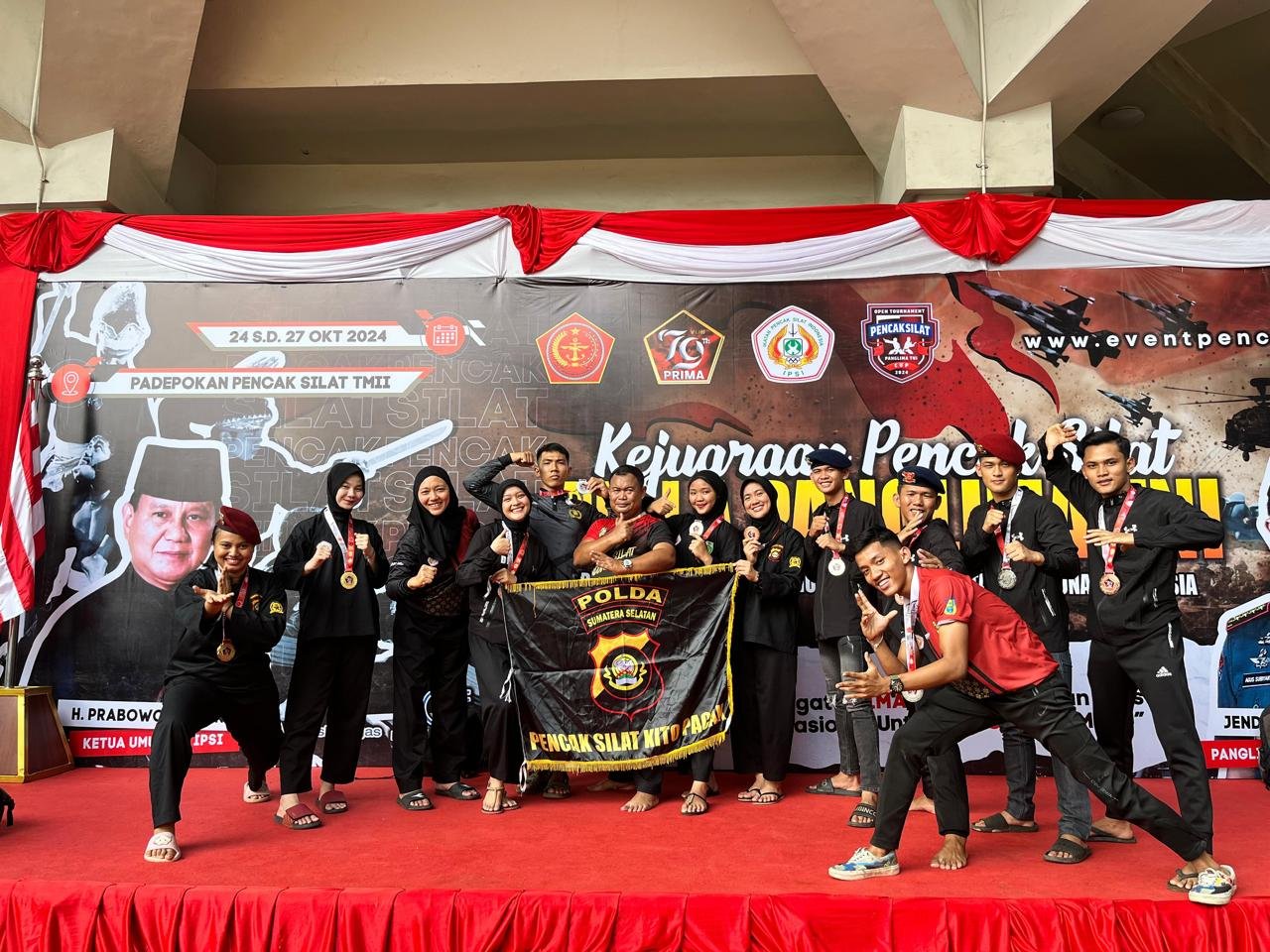MATTANEWS.CO, PALEMBANG – Keberangkatan 14 atlit silat dari Polda Sumsel waktu lalu tidaklah sia-sia belaka, sebanyak 2 Medali Emas, 5 Perak, 3 Perunggu diraih di Turnamen cabang olahraga Pencak Silat Piala Panglima TNI 2024, di Gedung Olahraga TMII Jakarta, Senin (28/10/2024).