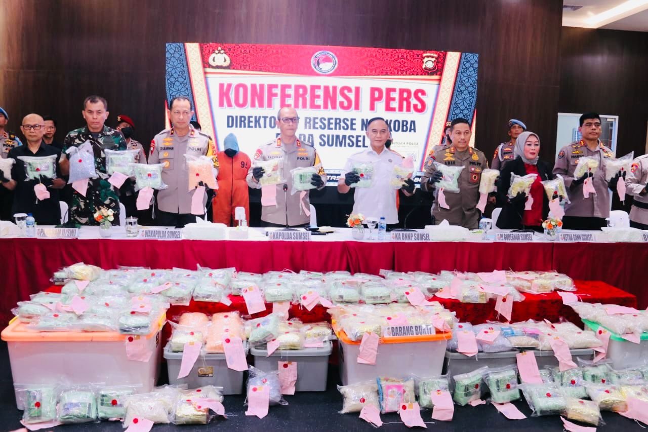 Kapolda menjelaskan, pengendalian narkoba dalam partai besar di Sumsel ini dikendalikan RK (DPO).