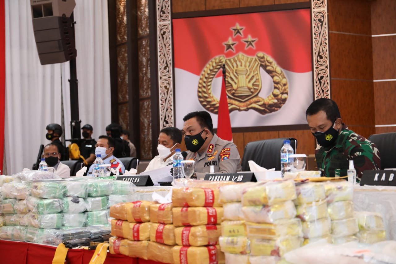 Yaitu dengan mengamankan barang bukti sabu seberat 412, 96 Kilogram (Kg), pil ekstasi sebanyak 54,614 butir dan ganja 674 Kg.