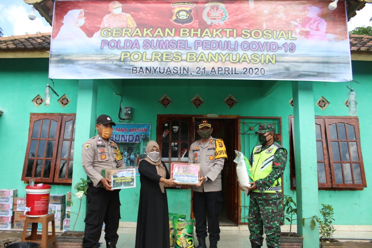 Polres Banyuasin Peduli dalam rangka mendukung program pemerintah tentang terkait dampak wabah Covid-19, digelar oleh Polres Banyuasin Sumatera Selatan (Sumsel).