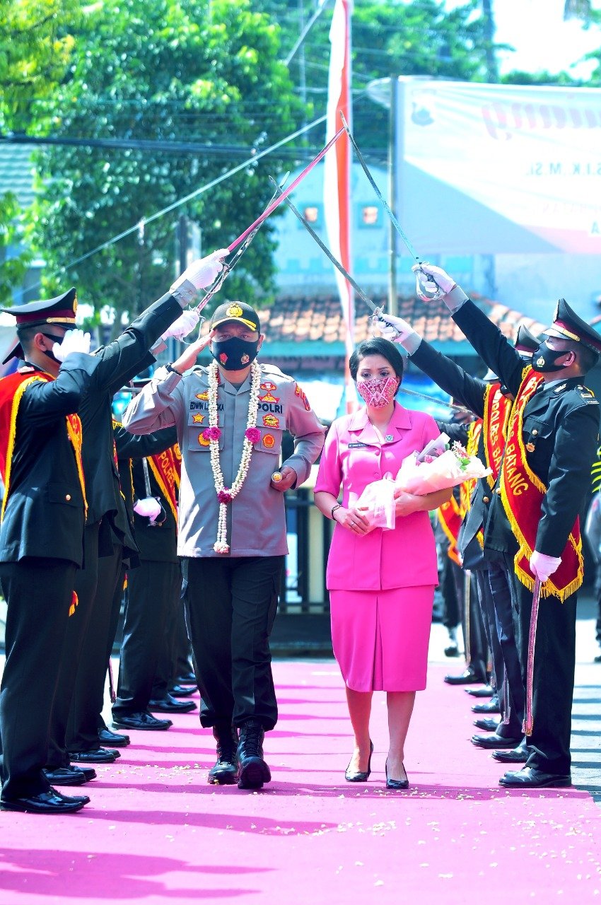 BATANG,Mattanews. co – Jajaran Polres Batang menggelar tradisi pedang pora untuk menyambut AKBP Edwin Louis Sengka, S.I.K., M.Si di Mapolres setempat, Selasa (1/9/2020).