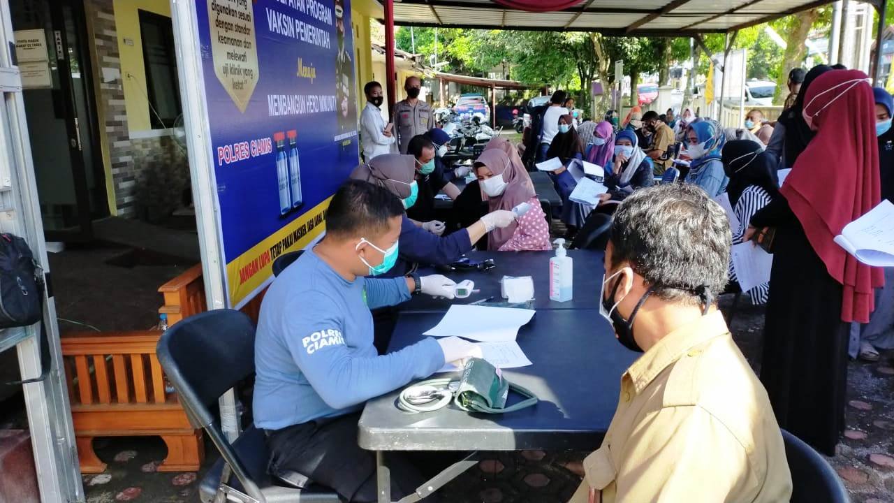 Kapolres Ciamis AKBP Wahyu Broto Narsono Adhi mengatakan, kegiatan vaksinasi masal ini sebagai bentuk dukungan Polri, untuk menyukseskan program pemerintah.
