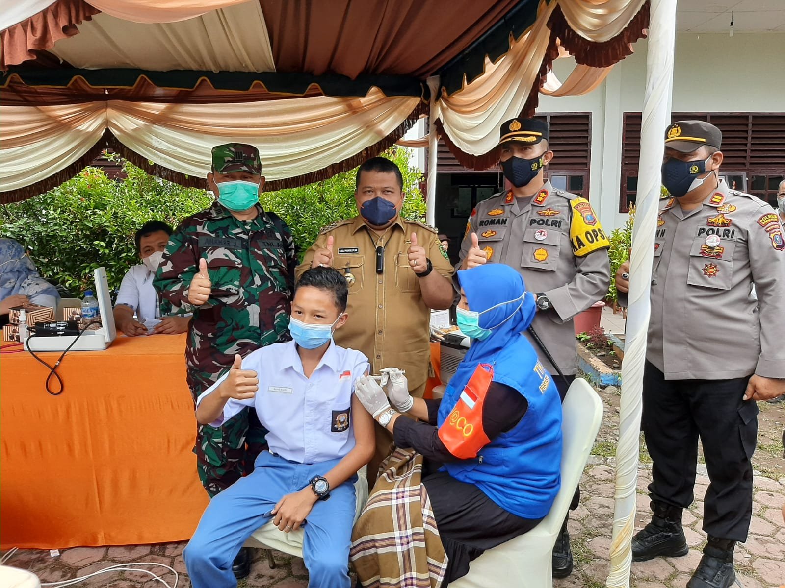 “Pelaksaan vaksinasi massal ini sudah digelar mulai Minggu (26/10/2021) kemaren dan puncaknya hari ini. Harapannya (vaksinasi) hari ini terpenuhi 3.500 dosis,” terang Kapolres.