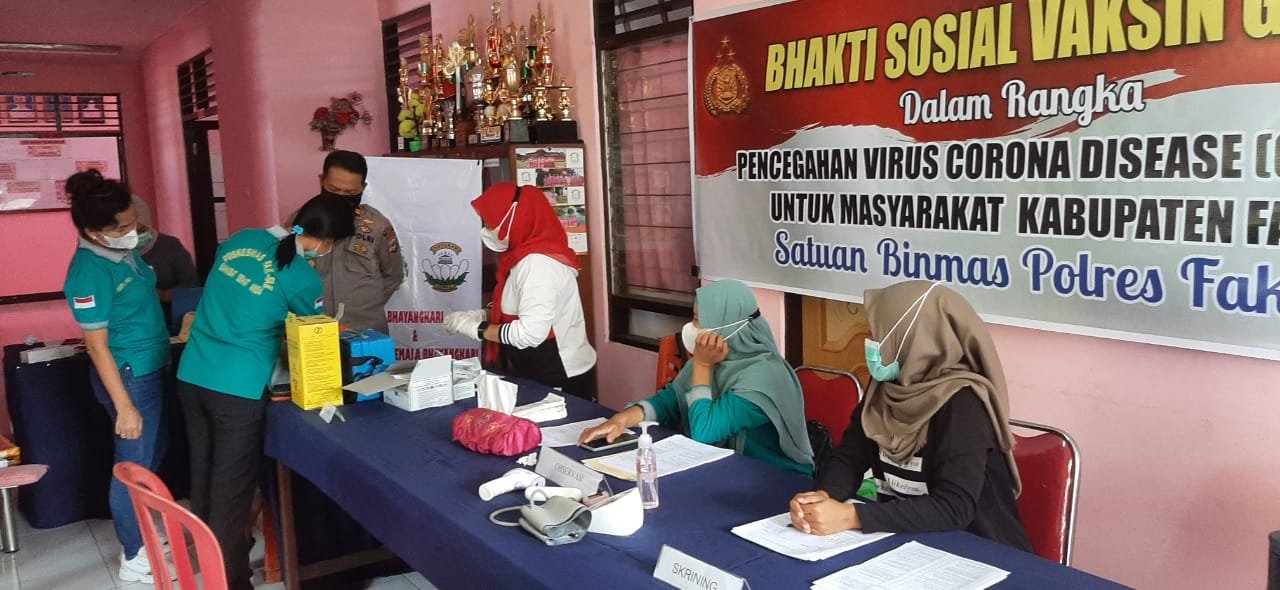 MATTANEWS.CO,FAKFAK – Polres Fakfak bekerja sama dengan Dinas Kesehatan Kabupaten Fakfak melakukan bhakti sosial Vaksinasi Covid-19 yang diperuntukan kepada Masyarakat Kabupaten Fakfak yang berlangsung di kantor Bhayangkari Polres Fakfak, Jumat (28/5/2021).