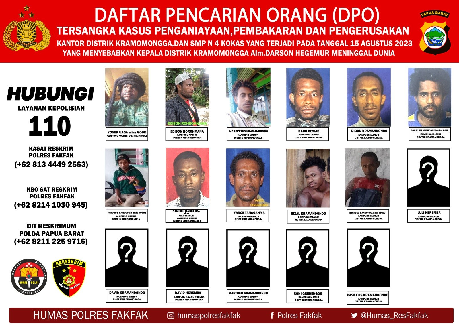 Kapolres Fakfak AKBP Hendriyana, S.E, M.H menyatakan, Informasi DPO ini telah disebarkan ke seluruh personel Kepolisian Sektor (Polsek) Bhabinkamtibmas dan warga sekitar untuk membantu ketika menemukan para pelaku laporkan kepada pihak yang berwajib.