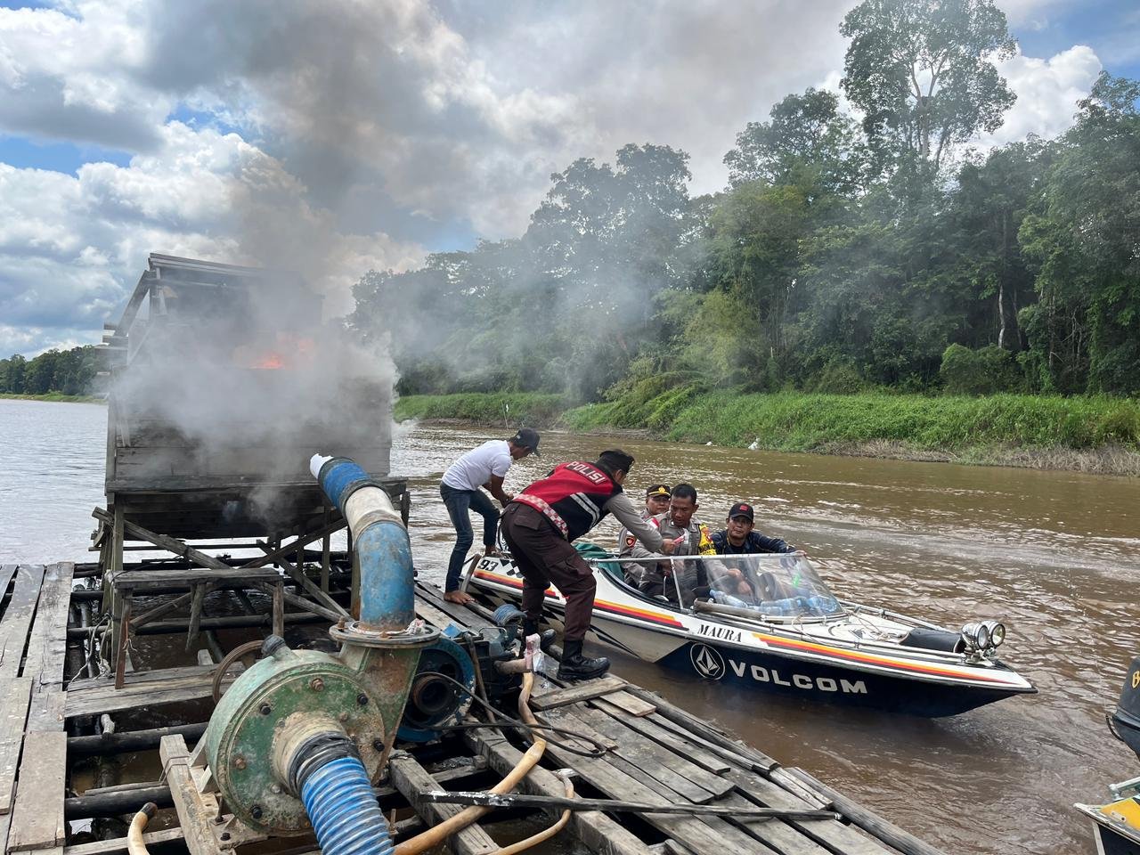 Alat tambang tersebut dimusnahkan dengan cara dibakar, sementara satu unit mesin pompa air merk NS dan selang penyedot diamankan sebagai barang bukti.