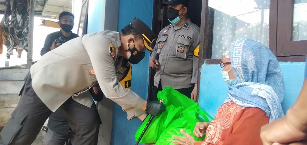 Kapolres Karawang AKBP Rama Samtama Putra didampingi Kasatlantas AKP Rizky, Kabag Logistik Kompol Iwan Setiawan Kapolsek Karawang Kota Kompol Suparno, Lurah Adiarsa barat Ifan dan pengacara kondang Asep Agustian, meninjau langsung jalannya vaksinasi dan membagikan paket sembako untuk warga yang membutuhkan.