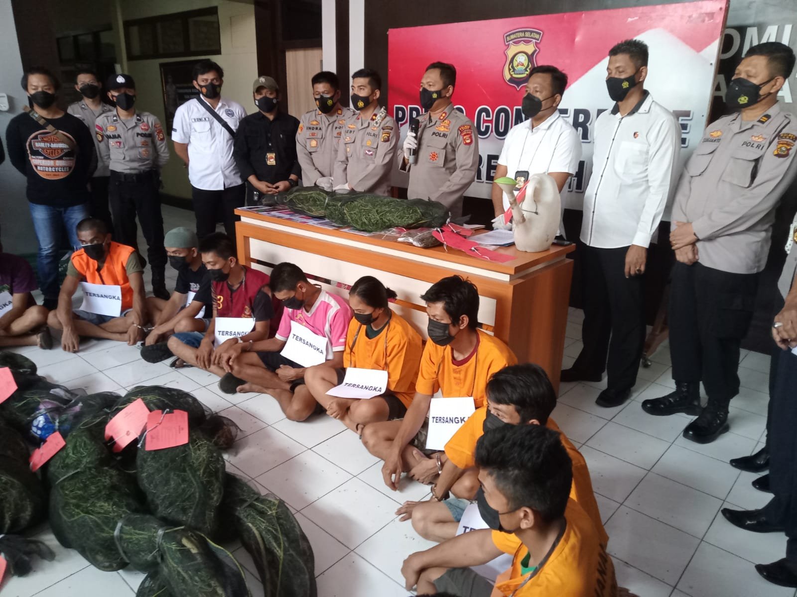 berlangsung Press Conference Ungkap Kasus Narkoba Penemuan Ladang Ganja di Desa Jemaring kecamatan Jarai Kabupaten Lahat.
