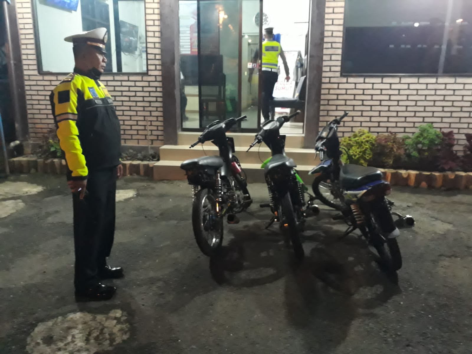 “Adapun hasil dari pelaksanaan patroli kali ini, petugas mengamankan sepeda motor yang memakai knalpot blong dan tanpa dilengkapi kendaraan dari salah satu bengkel. Diduga, kendaran itu sedang melakukan setting (pengaturan) sebelum aksi balap liar,” terang Kasat.