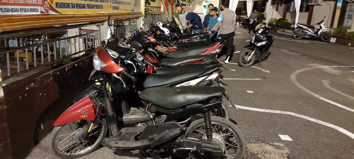 Adapun remaja yang diamankan, yaitu EM (17), NJ (18), MP (18), S (17), JP (16), RH (17), Ra (15), FAM (20), ARP (18), HM (16), IF (16), HPH (17), HD (16), CK (16), RS (16), MF (16), dan HR (14). Sedangkan sepeda motor yang diamankan sebanyak 13 unit dan beberapa di antaranya menggunakan knalpot blong.