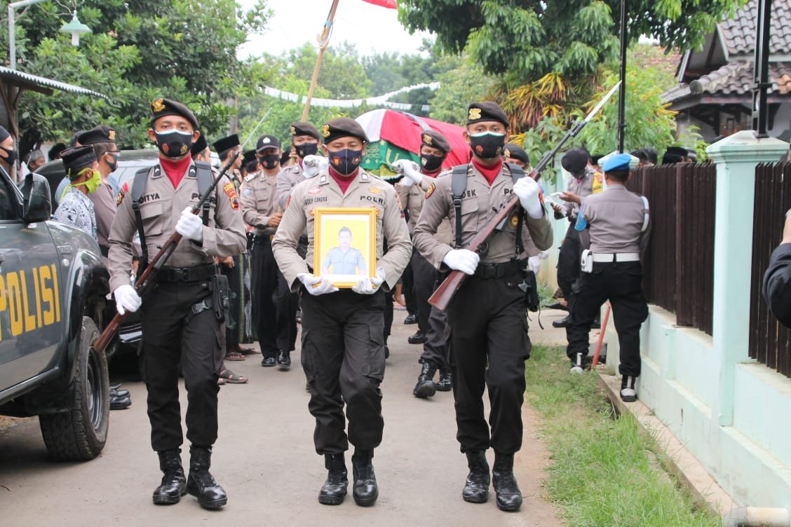 Pemakaman almarhum di dahului persemayaman yang dihadiri Kapolres AKBP Aris Tri Yunarko, S.I.K, M.Si, para pejabat utama Polres dan seluruh anggota baik staf Mapolres maupun Polsek jajaran.