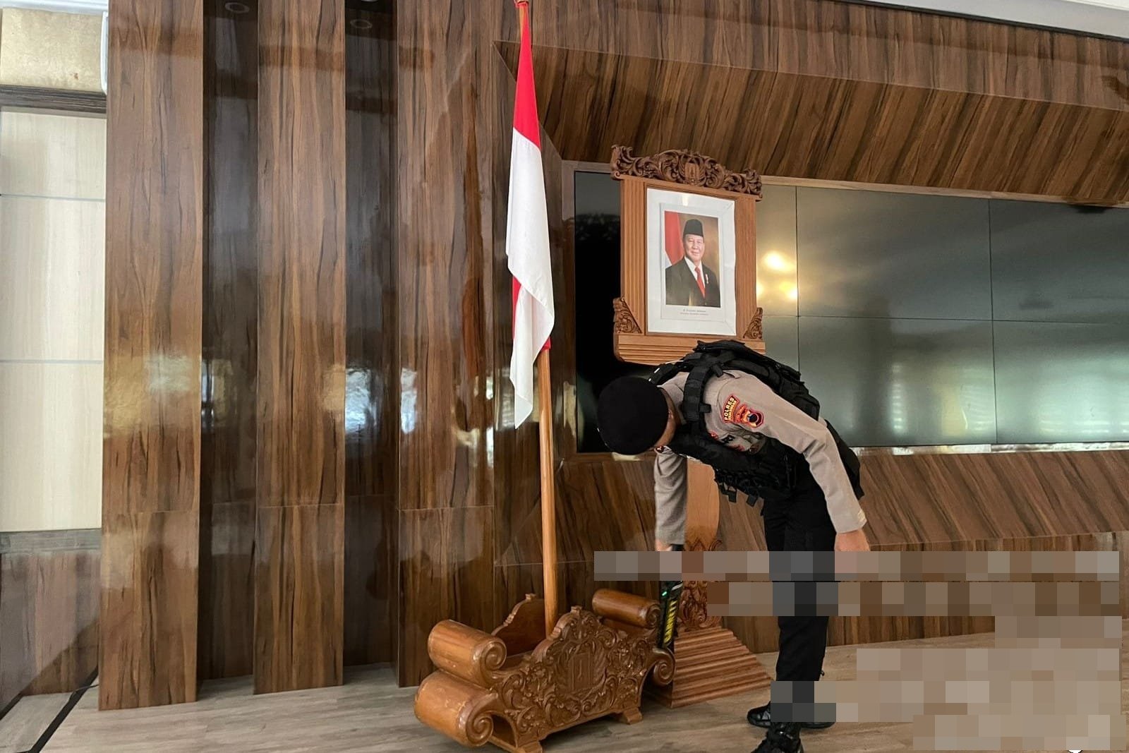 Petugas melakukan pemeriksaan secara menyeluruh di area gedung yang akan digunakan sebagai lokasi kegiatan. Langkah ini dilakukan untuk memastikan situasi tetap aman dan steril dari potensi gangguan keamanan.