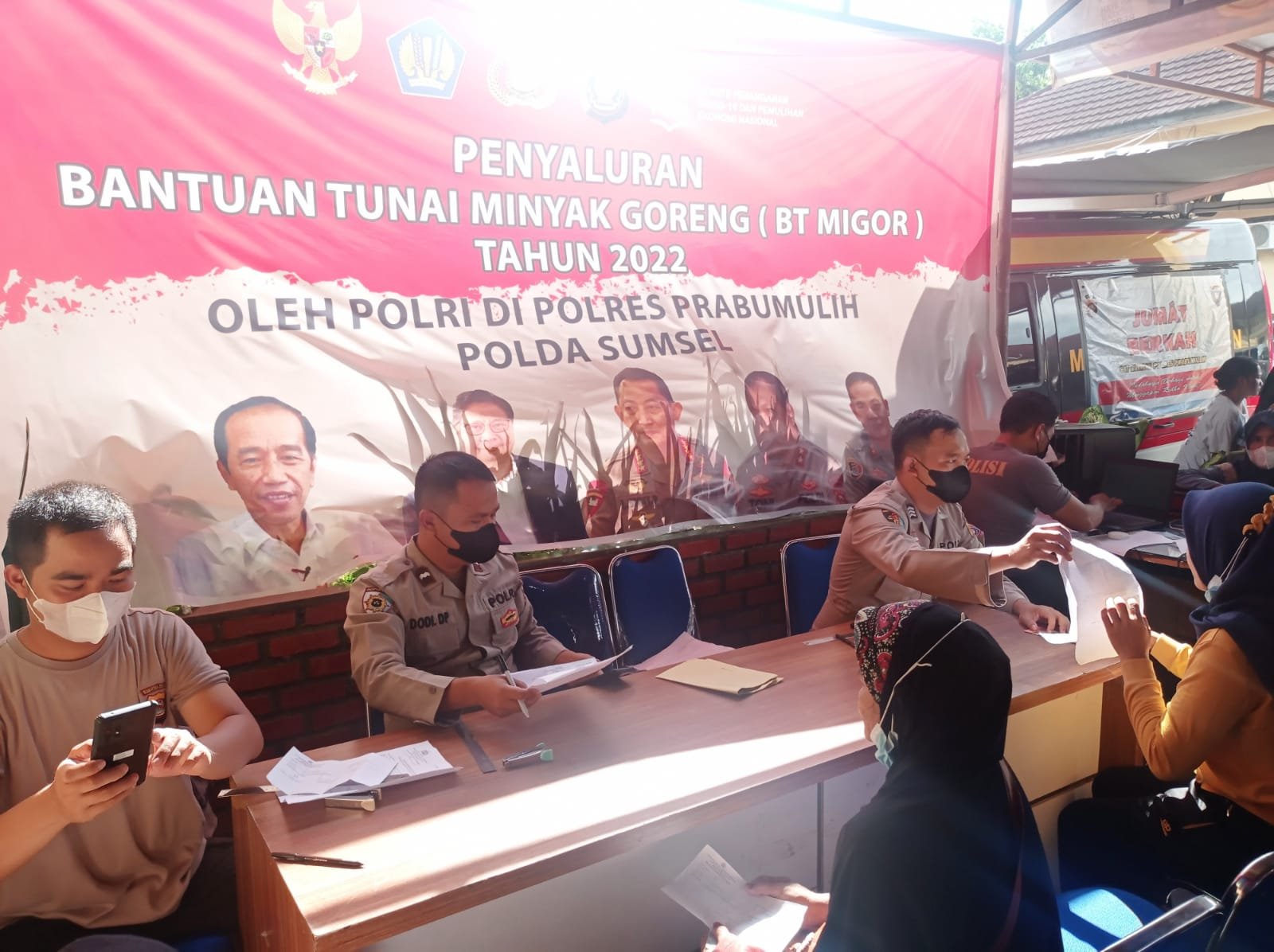 kini Pemerintah mulai menyalurkan Bantuan Tunai Minyak Goreng (BT Migor) untuk masyarakat yang berhak agar meringankan pembelian minyak goreng, Besaran BT Migor yakni Rp.300.000 untuk setiap penerima. Adapun untuk wilayah Kota Prabumulih disalurkan melalui Polisi Resor (Polres) Kota nya yang dipusatkan di Kantor Bag. Ops Polres Prabumulih, Rabu (27/4/2022) siang.