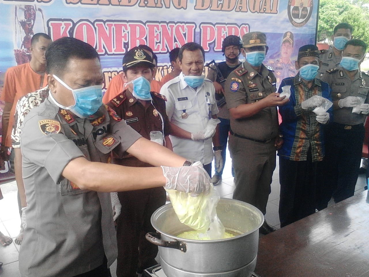 Pemusnahan Barang Bukti Narkotika itu dipimpin langsung Kapolres Serdang Bedagai AKBP Robinson Simatupang di dampingi oleh wakil Bupati Sergai H.Darma Wijaya dan disaksikan Kejari Sergai Paian Tumanggor, Kepala BNN Sergai Adlin Tambunan, Kaur Narkoba Bid Labfor Cabang Medan KOMPOL Hendri Ginting serta para undangan