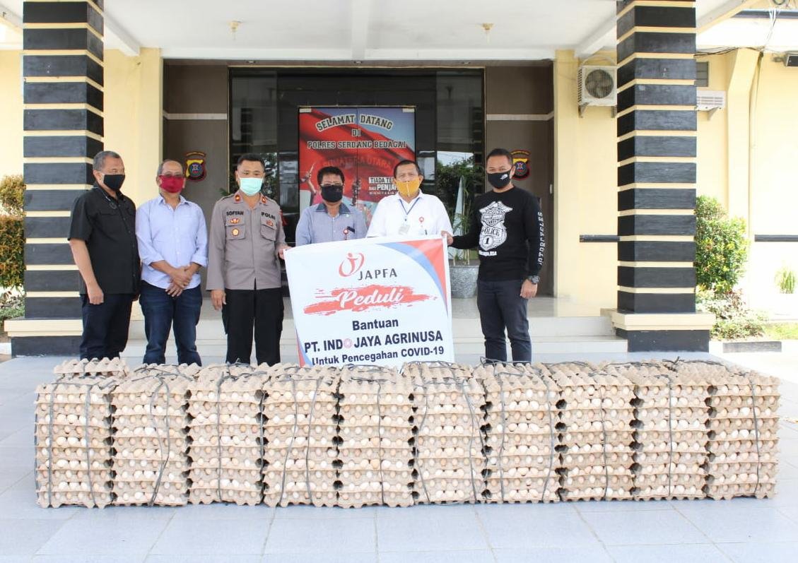 SERGAI, Mattanews.co – PT. Indo Jaya Agrinusa JAPFA memberikan bantuan 6000 butir Telur kepada Polres Serdang Bedagai, Dalam mendukung Polres Serdang Bedagai bersama pemerintah dalam penanganan penyebaran virus corona (Covid-19), Jumat (08/05/2020).