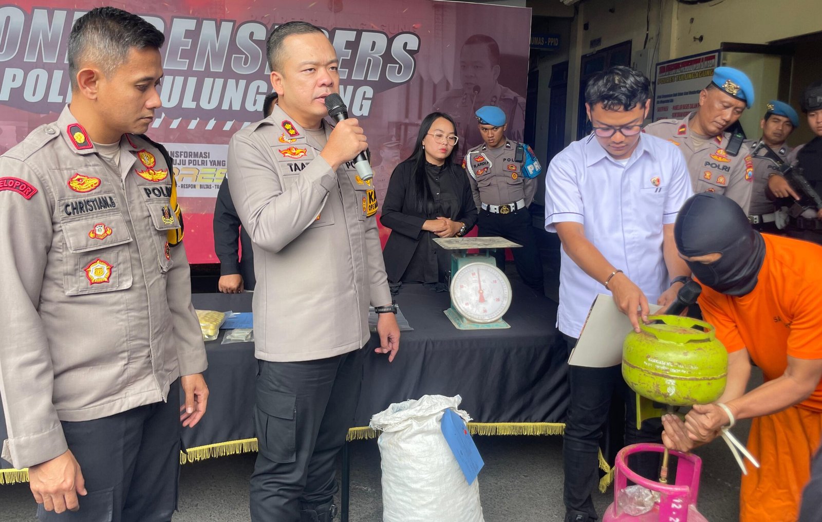 “BB yang diamankan dari rumah pelaku diantaranya 25 alat suntik, 5 plastik tutup elpiji 12 kg warna kuning berisi 50 tutup, 19 pack segel warna biru berisi 100 biji, 1 buah karung berisi bekas segel tabung elpiji 3 kg warna biru putih, 5 buah tabung gas elpiji 12 kg, 110 buah tabung gas kosong 3 kg, dan 30 gas elpiji 12 kg kosong warna pink, 35 buah tabung gas elpiji 3 kg (isi), 1 timbangan dan 1 buah kendaraan roda empat digunakan untuk operasional, 2 buah lemari es serta uang tunai Rp 8.419.000,” sambungnya.
