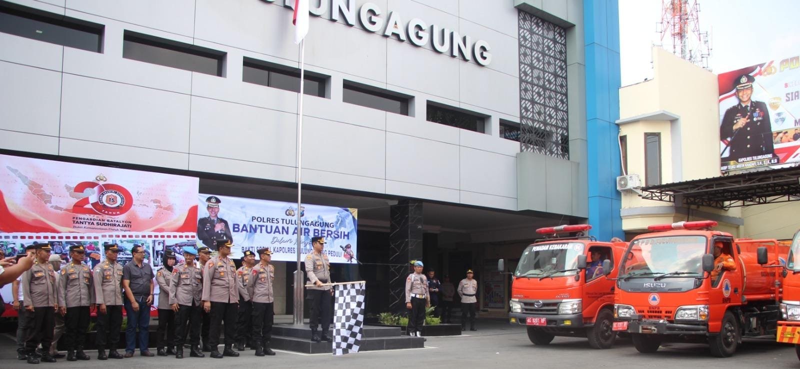 Pernyataan itu dikatakannya seusai memberangkatkan tujuh truk tangki yang berisi bantuan air bersih di halaman Mapolres Tulungagung, Rabu (25/10/2023).