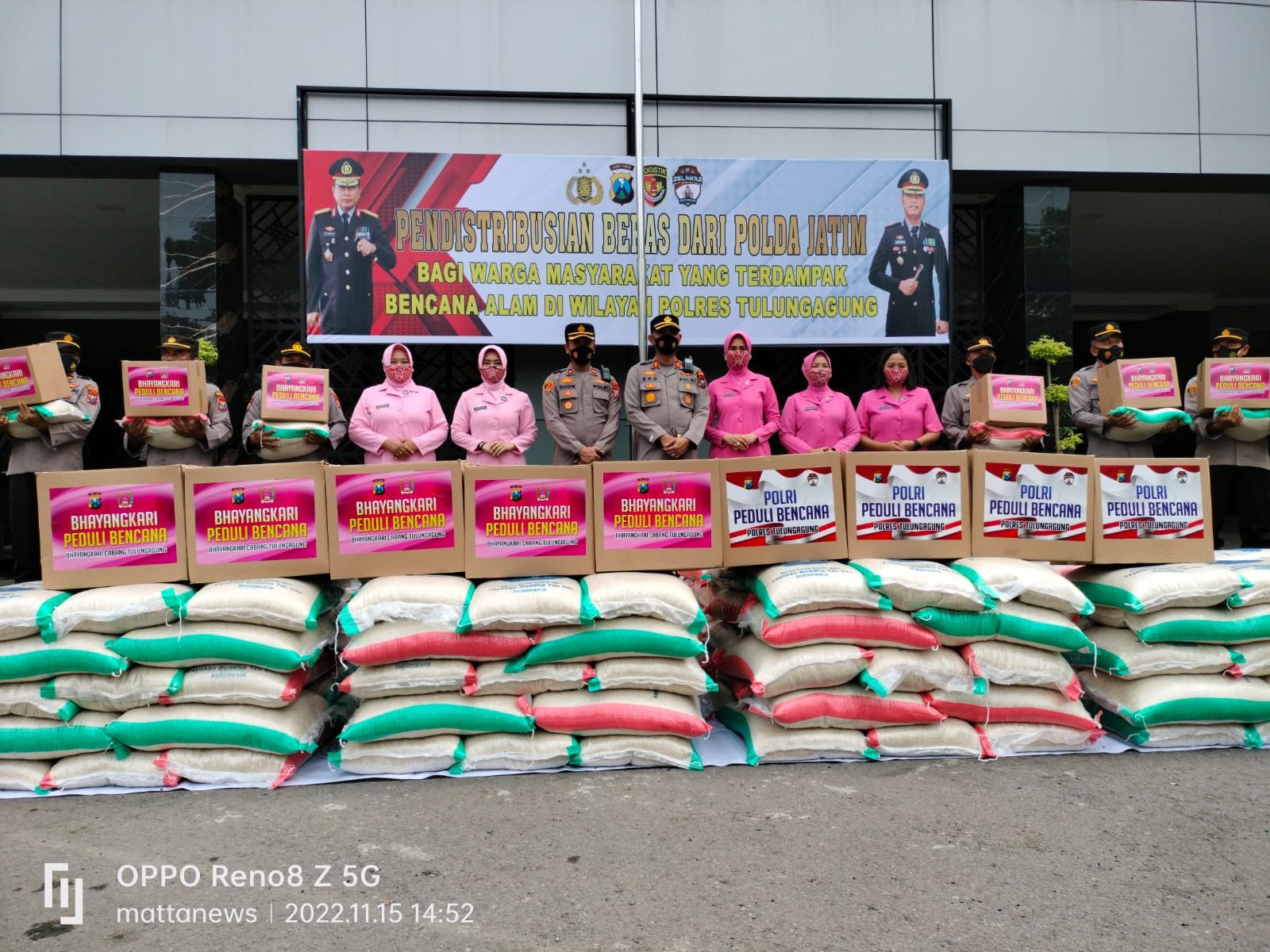Hal ini disampaikan pada saat dalam sambutannya sebelum pemberangkatan bantuan beras dari Kapolda Jatim dan bantuan paket sembilan bahan pokok dari Bhayangkari Tulungagung kepada warga terdampak bencana alam di wilayah hukum Polres Tulungagung bertempat di halaman Mapolres setempat, Selasa (15/11/2022).
