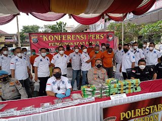 Polrestabes Medan berhasil amankan Delapan orang pelaku yang satu diantaranya wanita dalam pengungkapan tersebut. “Pelaku yang ditangkap itu ada kurir, pengedar dan pemasok sabu untuk diedarkan di Kota Medan,” kata Kapolrestabes Medan Kombes Pol Riko Sunarko, dampingi Plt Kasat Narkoba Kompol Rikki Ramadhan kepada wartawan di Mapolrestabes Medan, Rabu (20/10/2021).