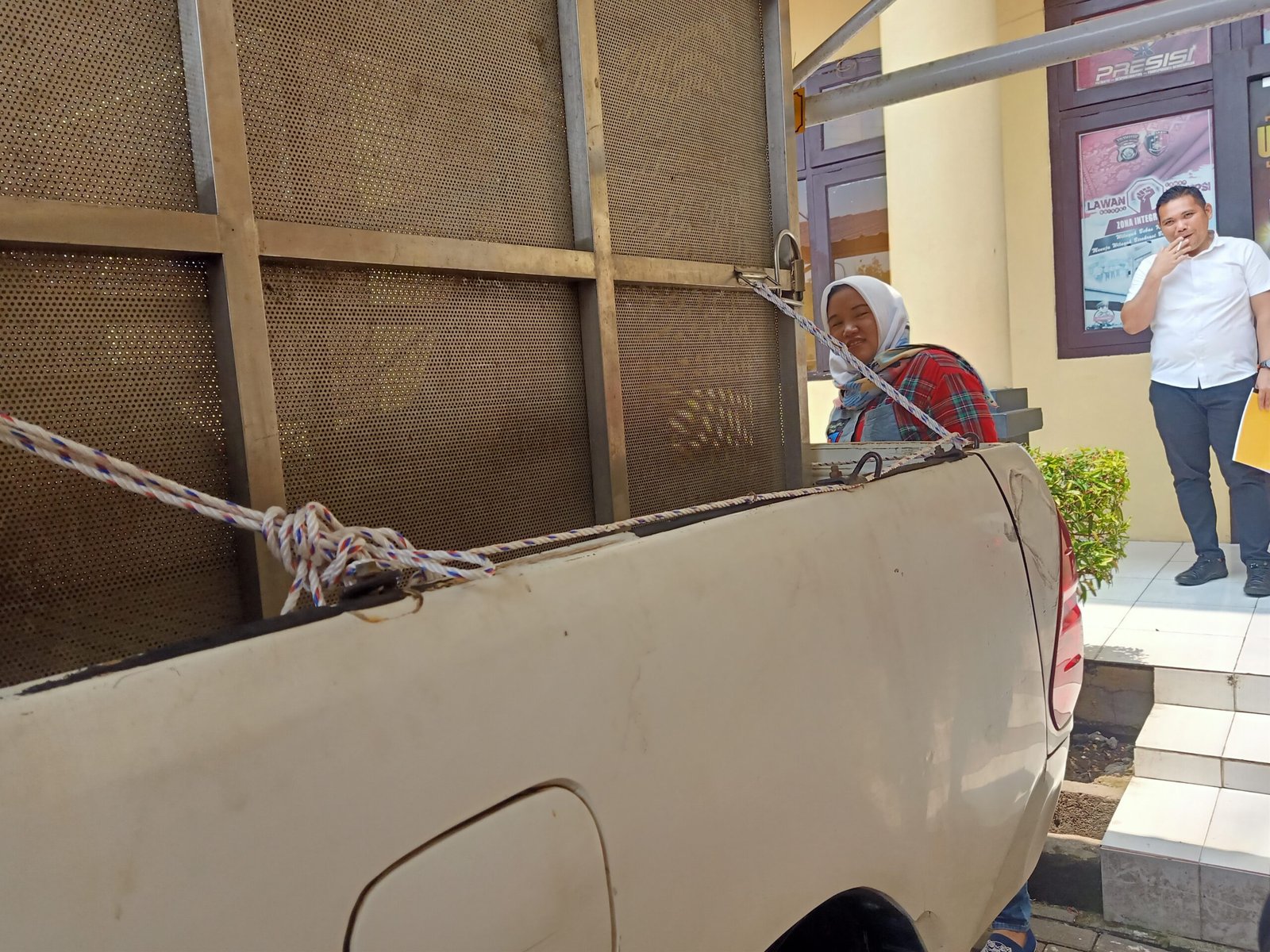 Beruang tersebut diangkut menggunakan mobil milik Kementerian Lingkungan Hidup dan Kehutanan Republik Indonesia dan berada didalam kandang besi, untuk dikembalikan ke habitatnya.
