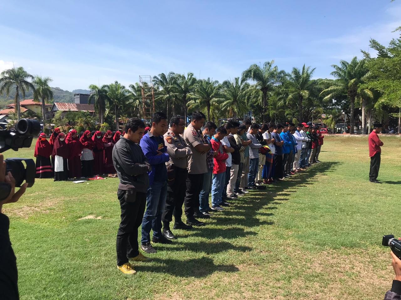 Dalam kegiatan sholat ghoib yang dilaksanakan tersebut, nampak Kapolresta Mamuju AKBP Mohammad Rivai Arvan dan para stafnya ikut melaksanakan sholat ghoib bersama, Senin (30/09/2019).