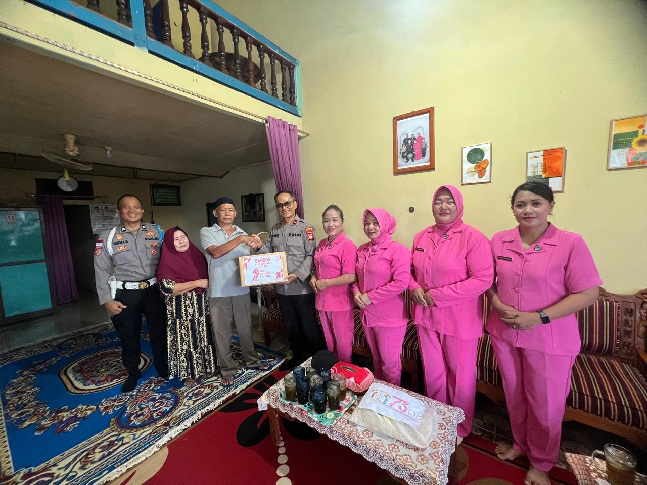 Penyerahan bantuan dilakukan langsung oleh dirinya dengan didampingi Ketua Ranting Bhayangkari Polsek Kalis, Jumisah Catur, para anggota dan ibu – ibu bhayangkari.