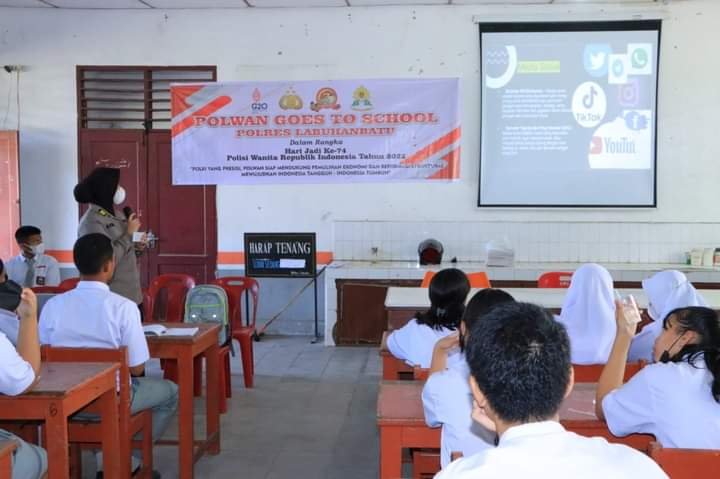 MATTANEWS.CO, LABUHANBATU – Dalam rangka hari jadi Polwan RI Ke 74 Tahun 2022, Polis Wanita (Polwan) Polres Labuhanbatu melaksanakan kegiatan Goes to School dalam di Sekolah SMA N 2 Rantau Utara, Jalan Menara, No.04 Rantauprapat (08/08/2022).