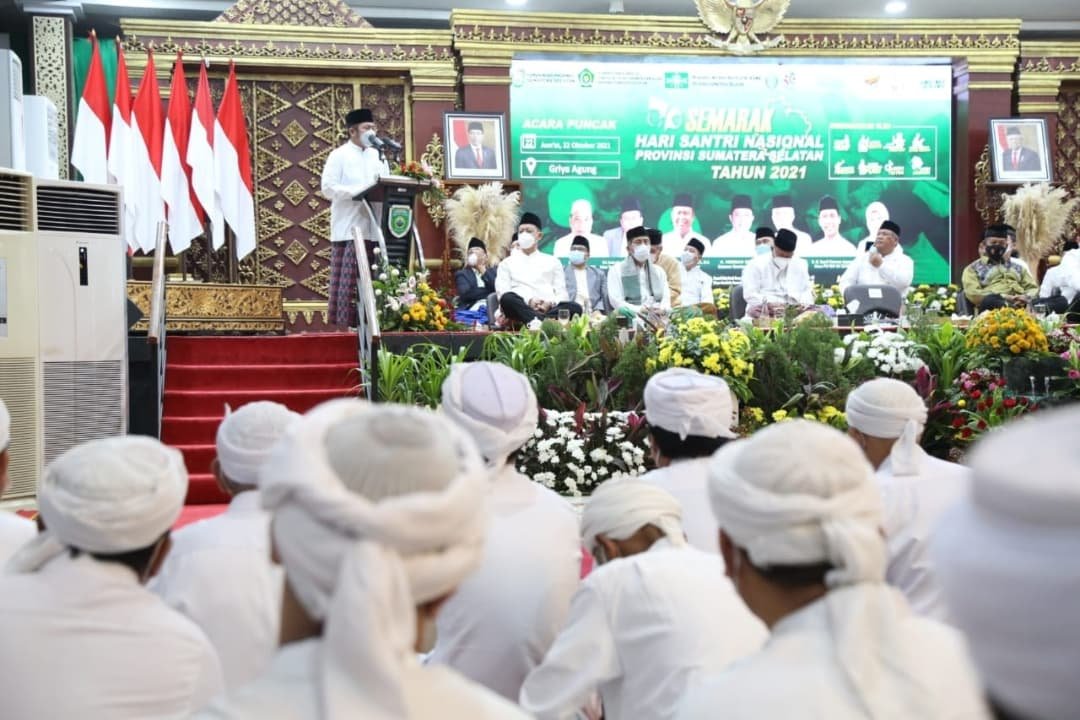 “Selain belajar ilmu umum, lulusan ponpes juga memiliki bekal agama yang baik. Pendekatan agama harus dilakukan dalam upaya mencegah peredaran narkoba di Sumsel,” ungkapmya saat memberi sambutan pada Semarak Hari Santri Nasional (HSN) 2021 yang digelar di Griya Agung Palembang, Jumat (22/10/2021) malam.