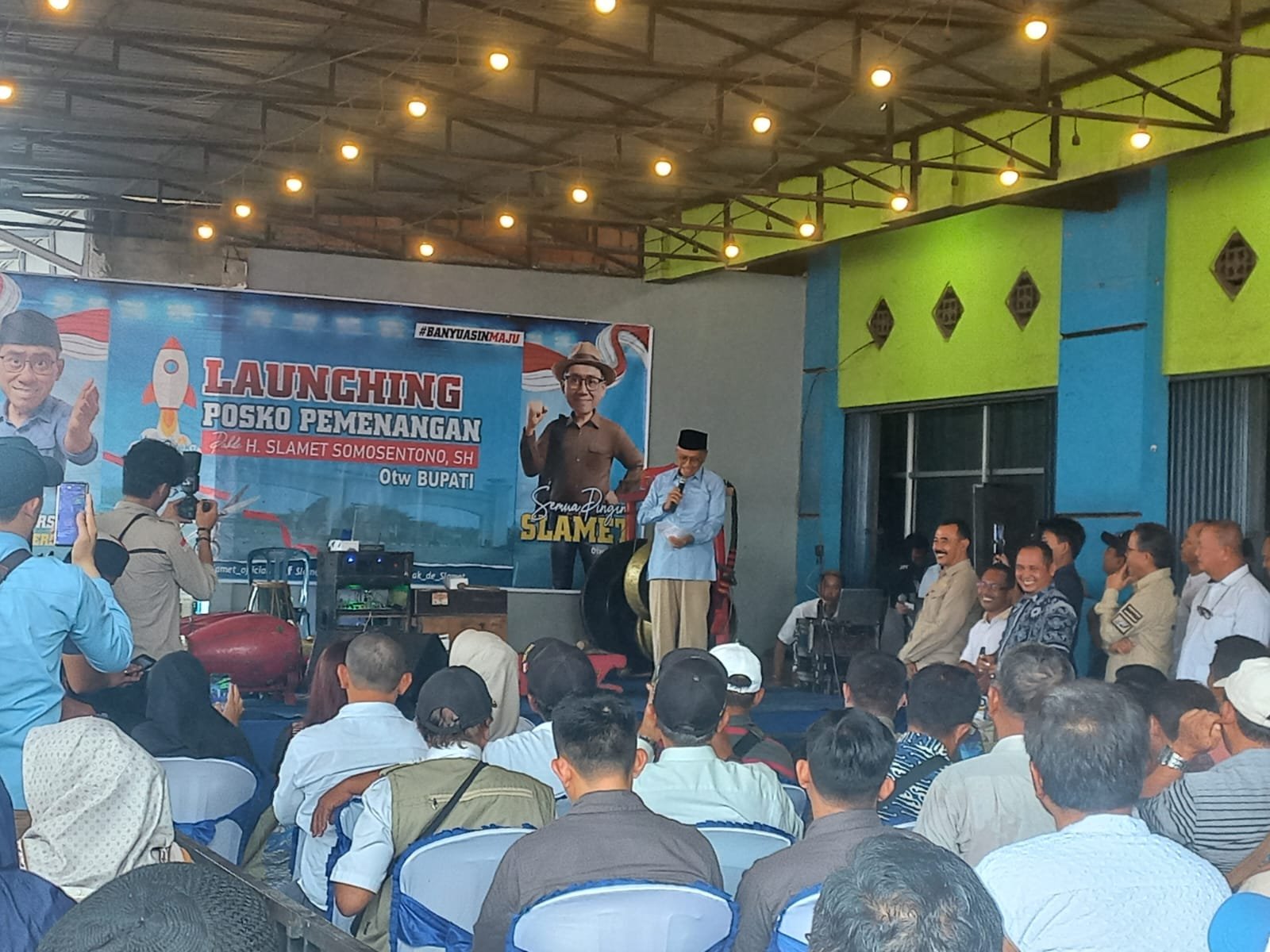 Bakal Calon Bupati Banyuasin Slamet Somosentono mengatakan, Posko Semua Pingin Slamet merupakan posko rakyat yang didirikan atas inisiasi dan semangat para kawan-kawan, sahabat, relawan dan masyarakat yang menginginkan perubahan kearah yang lebih baik lagi agar Banyuasin maju.