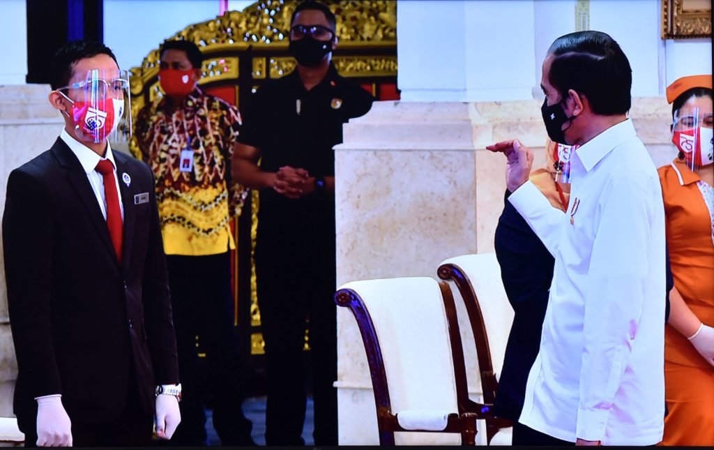 Turut hadir dalam agenda tersebut Menko Perekonomian Airlangga Hartarto, Menteri BUMN Erick Thohir, Menaker Ida Fauziah, dan Direktur BPJS Ketenagakerjaan Agus Susanto.