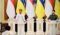 Turut mendampingi Presiden dan Ibu Iriana saat meninjau Kota Irpin yaitu Menteri Luar Negeri Retno Marsudi dan Sekretaris Kabinet Pramono Anung.