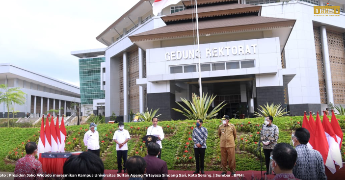 MATTANEWS.CO, JAKARTA– Pembangunan kampus baru Universitas Sultan Ageng Tirtayasa (Untirta) di Sindangsari, Kabupaten Serang, mewakili semangat Provinsi Banten untuk memajukan pendidikan tinggi di wilayahnya. Presiden Joko Widodo dalam kunjungan kerjanya ke Banten pada Kamis, 4 Maret 2021, sangat bergembira untuk dapat hadir dan meresmikan kampus baru tersebut yang nantinya akan turut mempersiapkan kebutuhan sumber daya manusia Indonesia Maju.