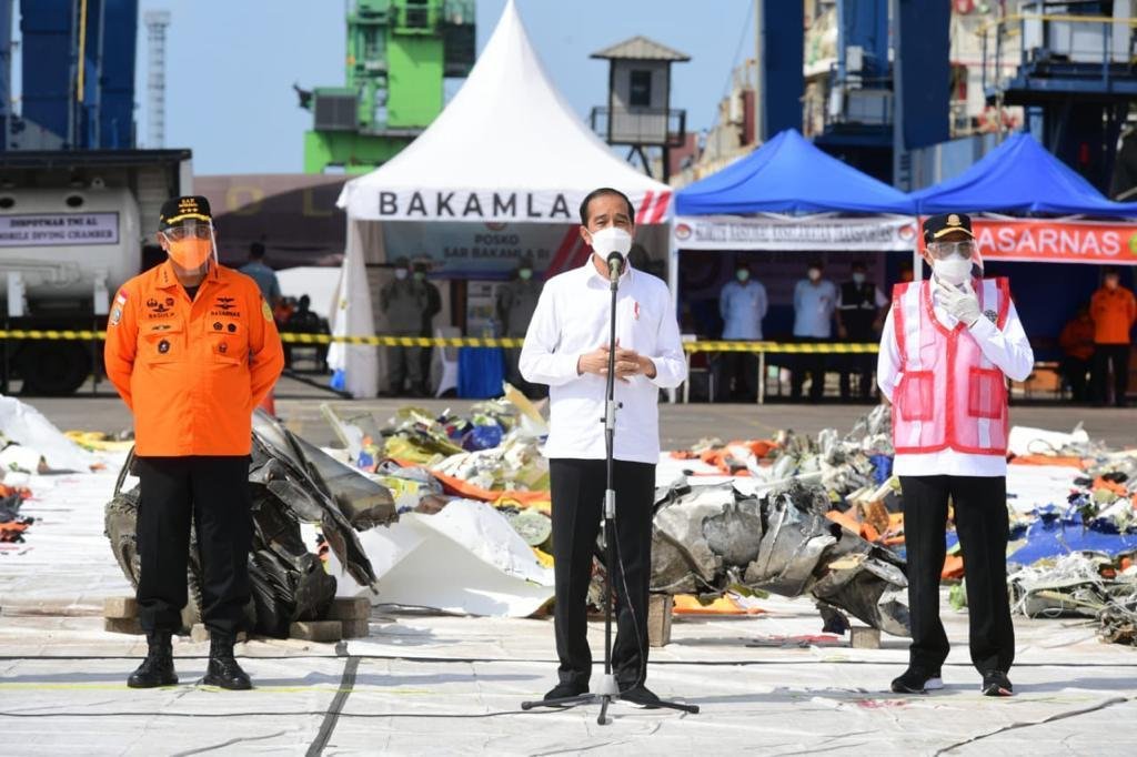 Hal tersebut disampaikan oleh Presiden Joko Widodo saat meninjau langsung posko darurat evakuasi pesawat Sriwijaya Air SJ 182 di Dermaga Ex Jakarta International Container Terminal (JICT) 2, Pelabuhan Tanjung Priok, Jakarta, Rabu, 20 Januari 2021.