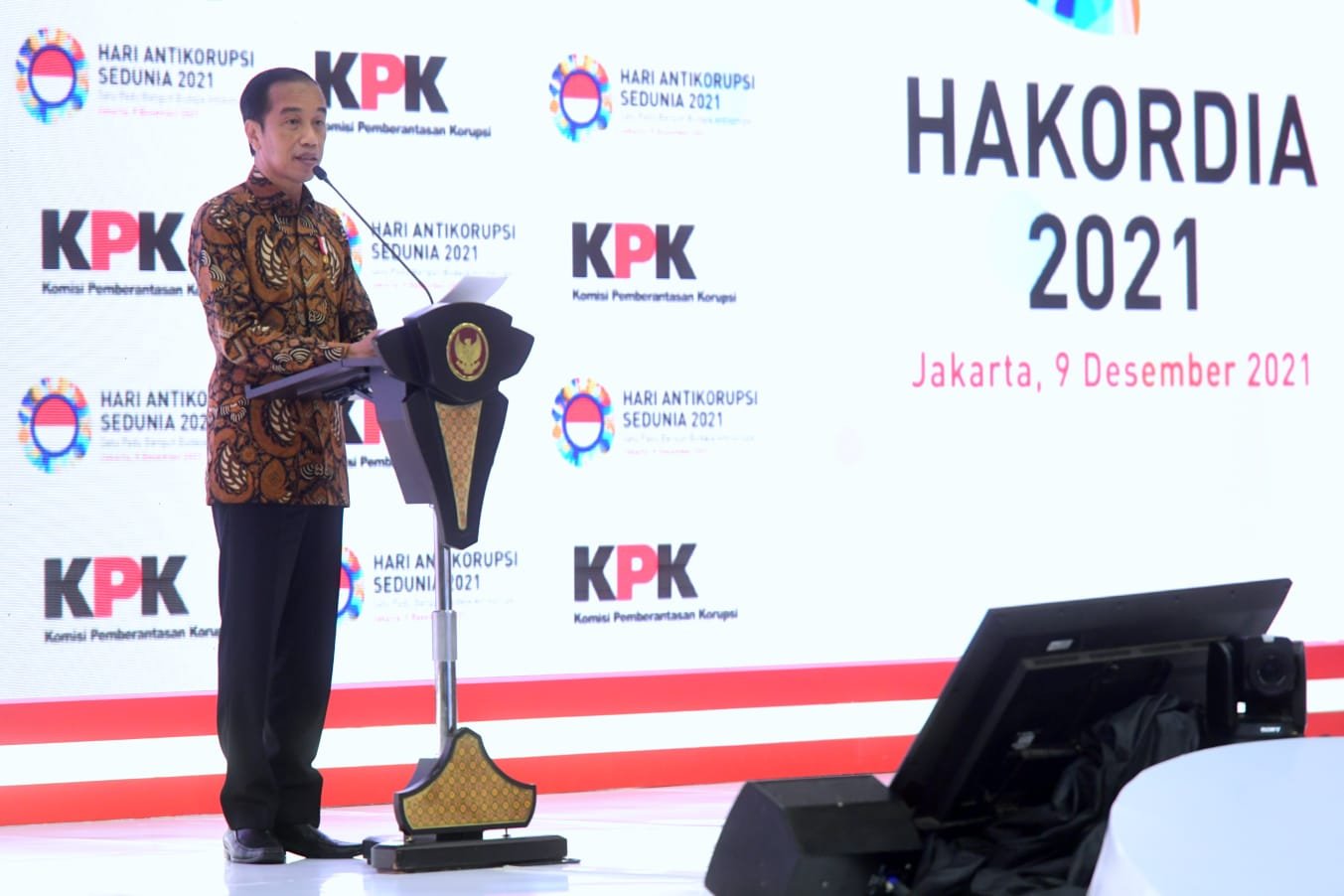 Demikian disampaikan Presiden saat memberikan sambutan pada acara peringatan Hari Anti Korupsi Sedunia Tahun 2021 yang digelar di Gedung Merah Putih Komisi Pemberantasan Korupsi (KPK), Jakarta, pada Kamis, 9 Desember 2021.