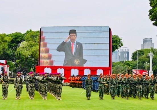 MATTANEWS.CO, JAKARTA– Presiden Joko Widodo bertindak selaku inspektur upacara dan memimpin upacara peringatan ke-77 Hari Tentara Nasional Indonesia (TNI) yang digelar di Halaman Istana Merdeka, Jakarta, pada Rabu, 5 Oktober 2022. Tema yang diangkat pada peringatan tahun ini adalah “TNI Adalah Kita”.