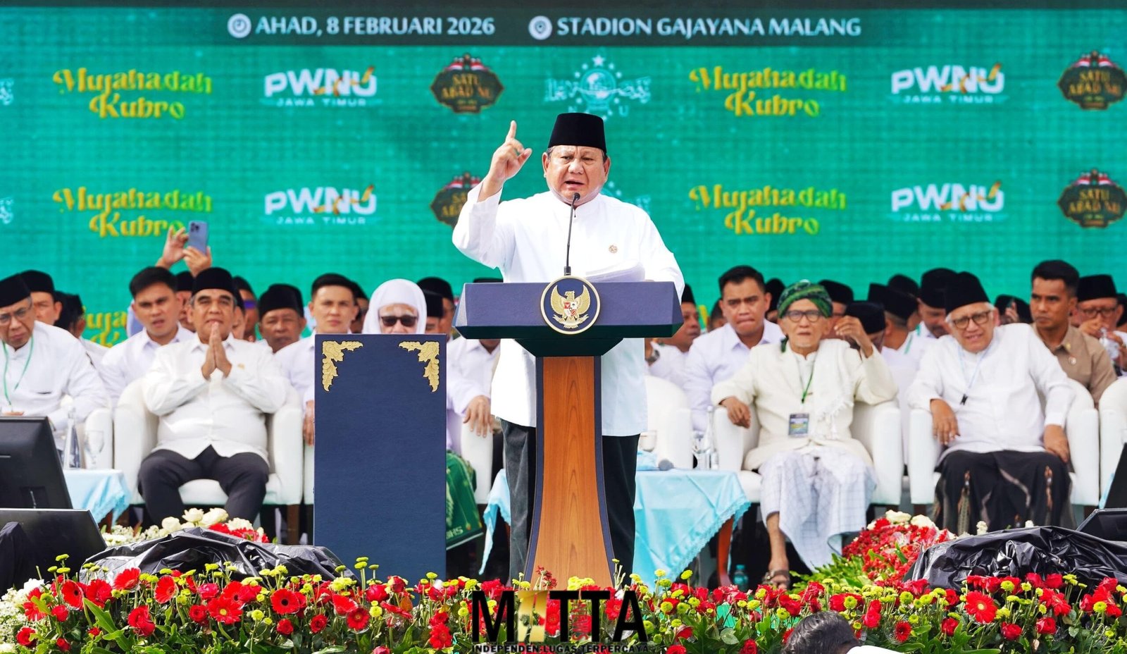 MATTANEWS.CO, MALANG – Presiden Republik Indonesia, Jenderal TNI (Purn) H. Prabowo Subianto hadiri Peringatan Hari Lahir (Harlah) 1 Abad Nahdlatul Ulama, berlangsung di Stadion Gajayana, Kota Malang, mendapat sambutan antusias seluruh jamaah Nahdatul Ulama (NU) yang memadati lokasi tersebut, Minggu (8/2/2026).