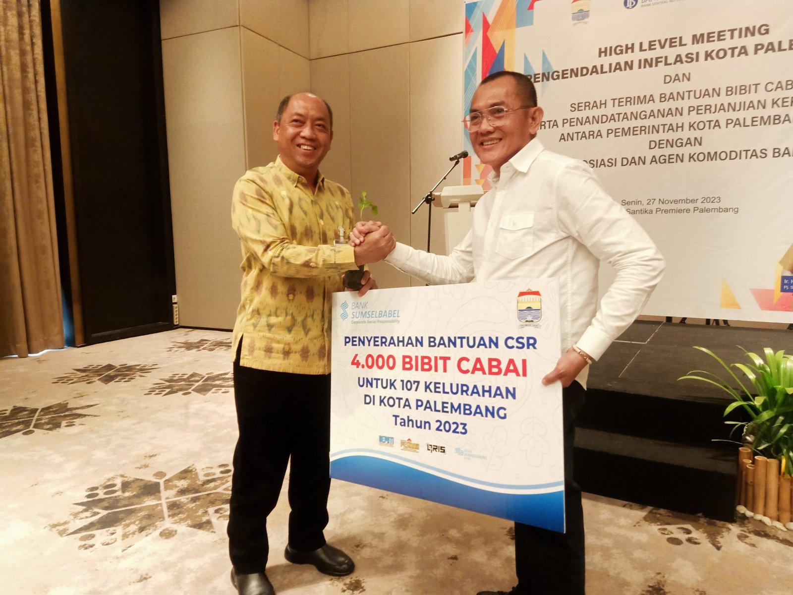 “Inilah sebagai bentuk nyata hadirnya BSB di Kota Palembang, sebagai dukungan perbankan dalam rangka pengendalian inflasi,” tutur Pj Sekda Kota Palembang, Ir Gunawan, saat menghadiri kegiatan Highbm level meeting pengendalian inflasi Kota Palembang dan serah terima bantuan bibit cabe, serta penandatanganan perjanjian kerjasama antara pemerintah Kota Palembang dengan produsen, asosiasi dan agen komuditas bahan pangan, di Hotel Santika Premiere, Jalan Gubernur H Asnawi Mangku Alam, Kelurahan Kebun Bunga, Kecamatan Sukarami, Palembang, Sumsel.